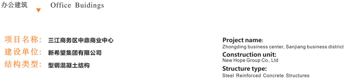 該項目主要建設(shè)辦公寫字樓、商業(yè)、餐飲等,地上總建筑面積182300m²,地下總建筑60000m²。項目由1#~5#樓五棟建筑組成,其中1#、2#為超高層建筑,1#塔樓高度211.66m,2#塔樓高度191.60m,均為框筒結(jié)構(gòu)(型鋼混凝土組合結(jié)構(gòu))。1#裙樓、2#裙樓、3~5號樓為混凝土框架結(jié)構(gòu),各結(jié)構(gòu)間以鋼結(jié)構(gòu)連廊連接。